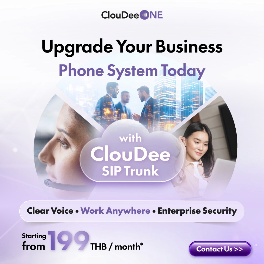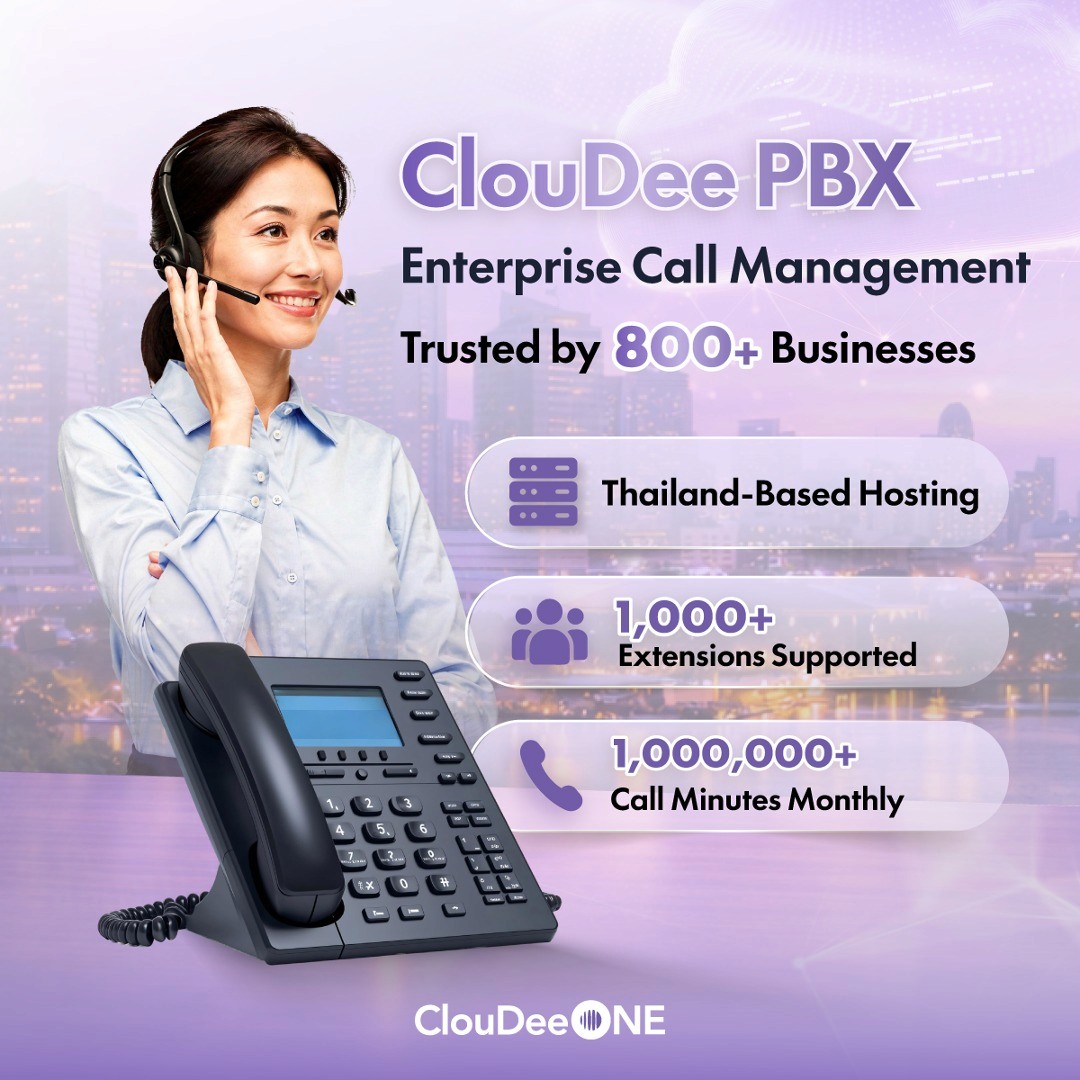 ไม่ว่าจะเป็นระบบ PBX, SIP หรือเบอร์โทรศัพท์ในประเทศ ClouDee มีฟังก์ชันที่เชื่อถือได้ ทำให้ทุกการสื่อสารราบรื่น ไม่มีสะดุด ด้วยคุณภาพเสียงที่คมชัด ค่าใช้จ่ายที่ควบคุมได้ และการบริหารจัดการที่ง่าย